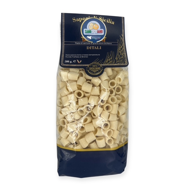 I Ditali di pasta artigianale siciliana sono un formato tradizionale, ideale per esaltare i sapori autentici della cucina mediterranea. Realizzati secondo metodi artigianali, con semola di grano duro di alta qualità e trafilatura al bronzo, presentano una superficie porosa che trattiene perfettamente i condimenti.