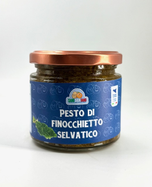 Un pesto ricco, dal sapore deciso, preparato con finocchietto, pomodoro secco, mandorle e uva passa. Perfetto sia come condimento per la pasta che sulle bruschette