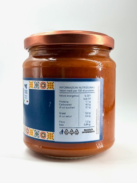 Passata Di Pomodoro (76%), Melanzane Fritte (15%), Cipolla (3,1%), Olio Extra Vergine Di Oliva (2,3%), Olio Di Semi Di Girasole, Zucchero, Basilico, Sale, Aglio. Acidificante: E330.