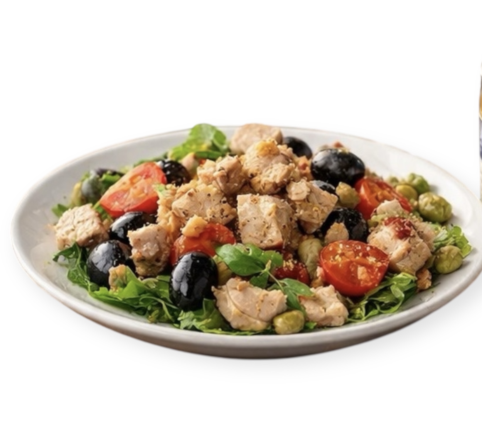 Insalate estive con pomodorini, olive, capperi e tonno.